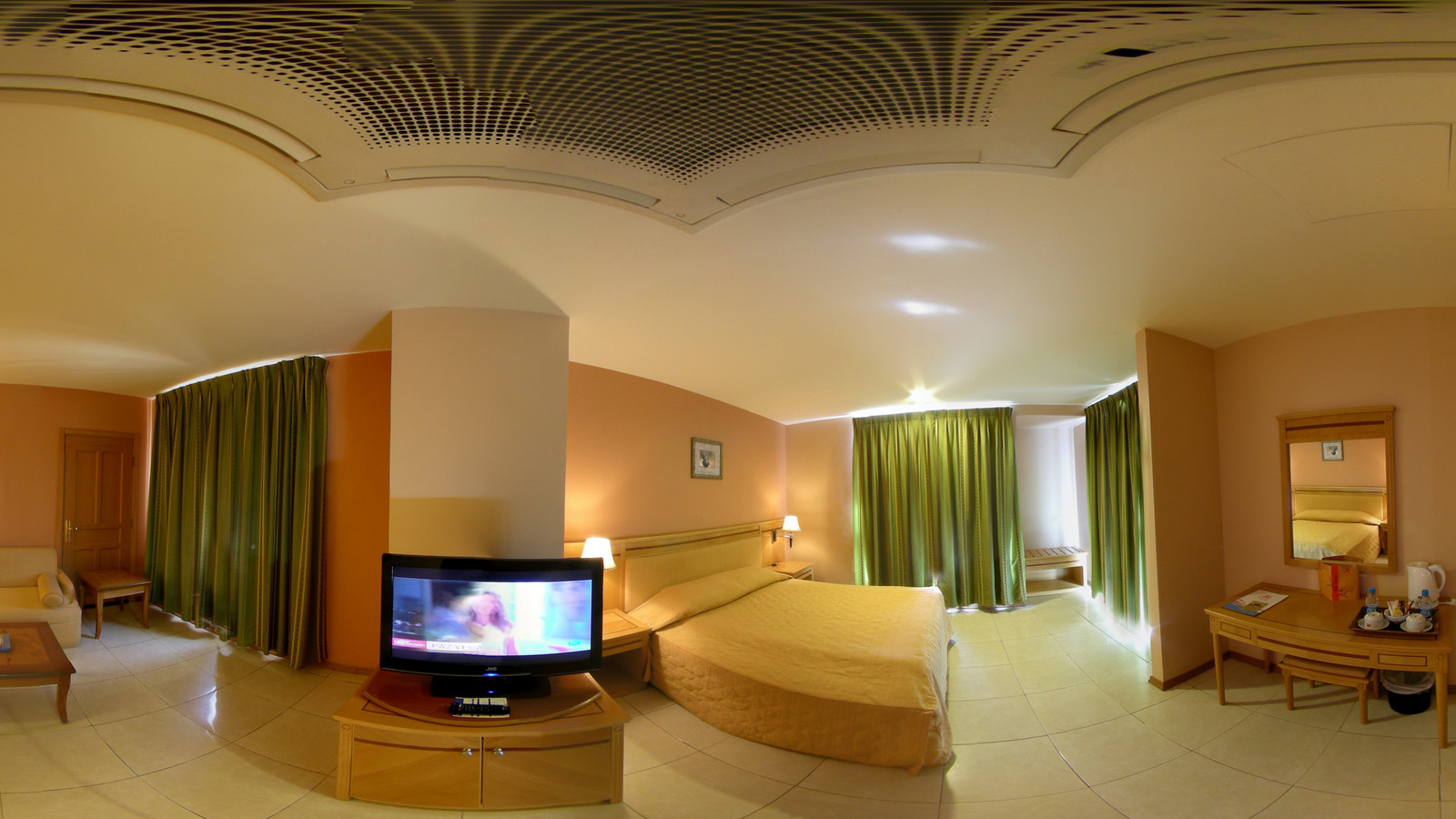 These are uniquely designed, spacious and offer a king size bed, separate lounge area, bathroom with shower, balcony with table and chairs and panoramic views of Aqaba and of the Red Sea. Central air conditioned and heat system controlled, bathroom accessories, wireless internet access, LCD T.V., safe deposit box,water, tea & coffee making facilities, mini fridge, hair dryer, direct dial phone, laundry service, room service and are non smoking.